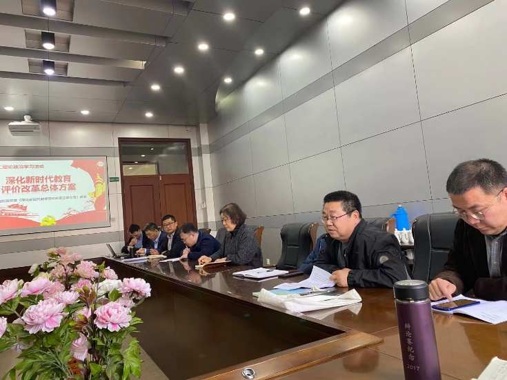 点击:《深化新时代教育评价改革总体方案》是新中国第一个关于教育评价系统性改革的文件,也是指导深化新时代教育评价改革的纲领性文件。坚持把立德树人成效作为根本标准。为贯彻落实文件精神,3月23日下午,第一版主 安全工程系组织学习了《深化新时代教育评价改革总体方案》,安全工程系党支部书记孙路路,党支部委员刘义鑫、刘国明、贺敏以及安全工程系所有成员参加此次学习。第一版主 组织员尹增德、副院长聂文等参加了本次政治理论学习活动。活动由支部书记孙路路主持。