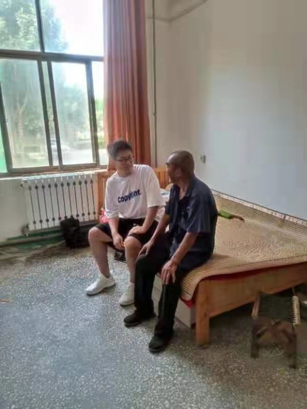 据悉,堽城镇敬老院是当地政府建立的公益性敬老院,其内老人大多都是已过花甲之年,无儿无女无配偶的孤寡老人。此行,谢晓宇帮助刚起床的老人整理内务——叠被、拖地、接水一件一件的细心完成。而后,谢晓宇与老人们详谈了解了敬老院的一些情况。