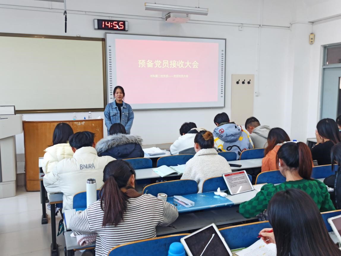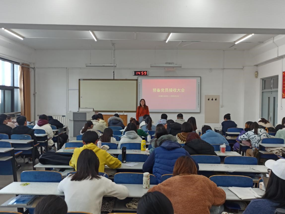 点击:11月18日,第一版主 本科第二党支部在S1-213召开预备党员接收会议,讨论接收李佳迎等26位同志为中共预备党员的有关问题。本科第二党支部全体成员参加此次会议。