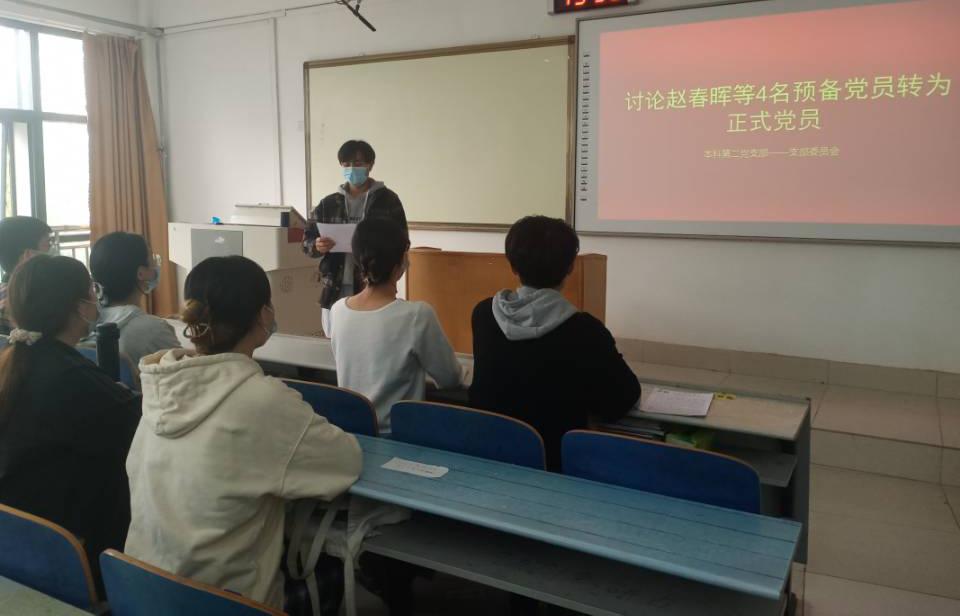 会议介绍了赵春晖两位同志的基本情况,支委会成员互相讨论并各自发表了意见。支委会成员从思想认识、政治素养等方面对拟接收的正式党员进行了全面审查。经支委会成员充分讨论后,一致同意拟于3月3日召开的本科第二党支部党员大会的决定,讨论了接收赵春晖等四位同志为中共正式党员的事宜。同时,会议部署了接收四位同志为中共正式党员的投票工作。