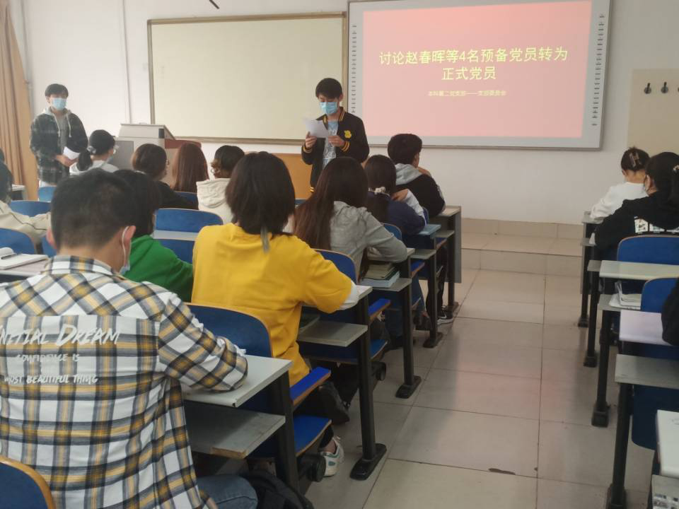 会议严格按照党组织预备党员转为正式党员的程序。首先由已满预备期的预备党员宣读转正申请书,赵春晖等4位预备党员分别进行申请书宣读流程,宣读内容包含了预备期在政治觉悟、思想认识方面的进步和表现,以及对于党的纲领、党的规章制度等理论知识的深刻学习,表达了加入党组织的期望和随时准备为人民服务的决心。随后由入党介绍人介绍各位预备党员在预备期间的表现情况,由预备党员的培养考察人介绍预备党员在预备期间的教育和考察情况。经全体党员共同讨论并发表意见,以及党支部大会讨论后,投票表决转为正式党员的同志。