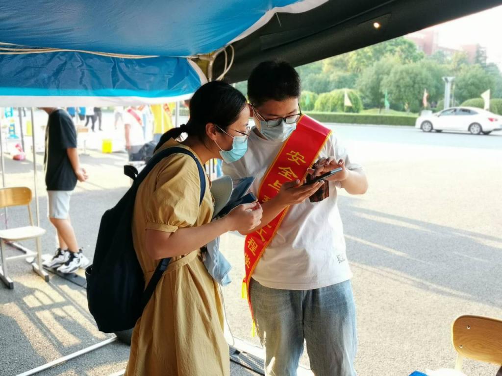 清晨,迎新服务团队便投入到紧张而忙碌的工作中。去往火车站前,志愿者们对大巴车进行了卫生清理和消毒,营造了良好的乘车环境;在火车站,志愿者搭建帐篷,迎接新生,充分展现第一版主 的热情与关怀;学校南门,志愿者们进行人群分流,为入校新生进行行李消毒、体温监测和健康码检查等,确保疫情期间的校园安全;进入校园,亲切的欢迎标语与飘扬的学院彩旗随处可见,摆渡车在校园中穿梭,切实缓解新生搬运行李压力;报到处,志愿者们熟练地为新生办理入学相关手续,帮助研究生新生们完成了入学第一步。