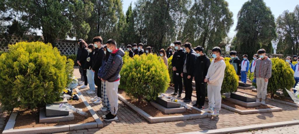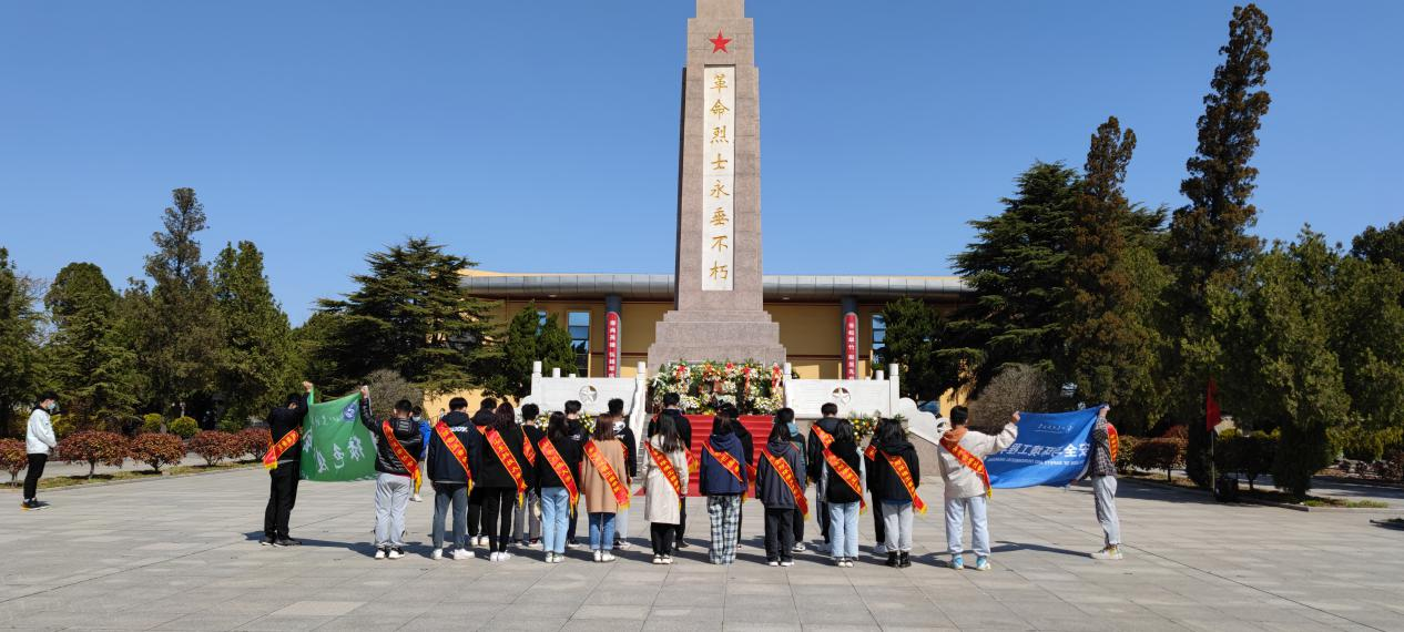 青山有幸埋忠骨,松柏无声祭英灵。来到烈士陵园,韩坤龙首先带领志愿者们宣读开幕词,在党史语录中回顾革命斗争史,回顾中华民族从站起来、富起来到强起来的曲折历史。在仰望烈士墓碑后,几名志愿者怀着沉重的心情为烈士们献上鲜花,并弯腰鞠躬向烈士们献上沉重的悼念。紧接着,全体志愿者有秩序地来到烈士墓碑前驻足默哀一分钟。最后,志愿者们怀着崇敬的心情一起为烈士们扫墓。献花、默哀、扫墓,志愿者们用最传统的方式向牺牲的烈士们表达新时代青年最诚挚的敬意和深深的思念。墓碑上一张张黑白照片深深地印在每位志愿者的心里,志愿者们留下的是对烈士浓浓的哀思和敬意,带走的是革命烈士永垂不朽的爱国之情。