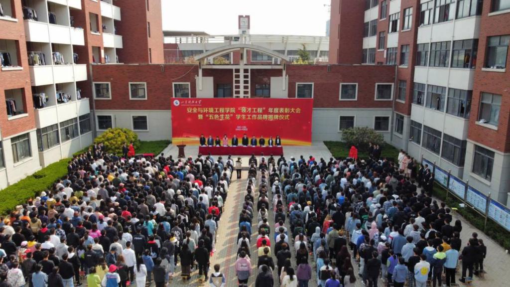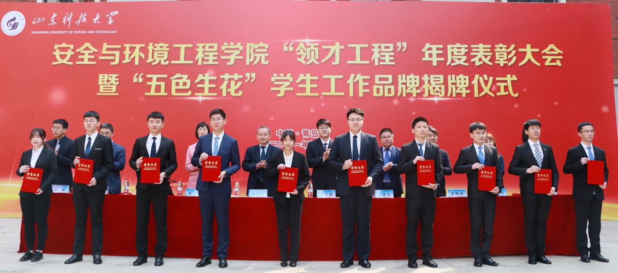2021年4月10日上午,安全与环境工程学院在学子广场隆重召开2020年度表彰大会暨“五色生花”学生工作品牌揭牌仪式。校团委书记尹立明,学生工作处副处长孔环,学院党委书记张恩生,学院党委副书记兼副院长王建友,学院副院长刘音、聂文、曹晓强及团委全体老师出席大会。学院全体学生参会。会议由学院团委书记潘刚主持。