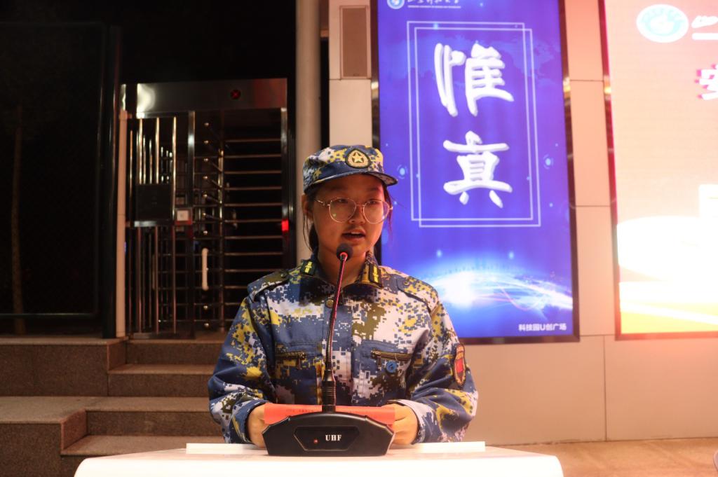 本科新生代表周常蕾代表全体2021级新生,向为学院领导、老师以及学长学姐表示最衷心的感谢,她代表新生郑重承诺:会传承红脉、坚定自信,深入了解山科历史底蕴;充满好奇,挑战未知,始终保持旺盛的探索能力;治学修身,勇于追梦,立志成为高素质人才;崇德、慧智、慕美、尚体、颂劳,成为全面发展的大学生。