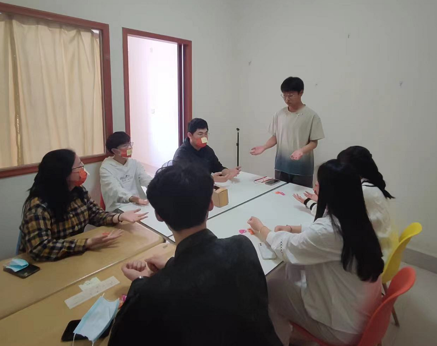 本次团辅通过“你有我没有”的热身游戏,鼓励、引导参与活动的同学分享倾诉自己在疫情期间的烦恼与焦虑,同学们积极发言,在互相提供负面情绪应对方法的同时拉进了彼此的距离。随后通过“不许做挑战”、“谁是卧底”、“词语造句”等游戏,将疫情期间困扰我们的问题化为快乐的种子,在忆苦思甜的过程中,大家脑洞大开,金句频出——医护人员、志愿者、做核酸等词语,让同学们对疫情期间防疫人员的伟大付出心怀感恩,也在“猜歌名”环节中写下对伟大战“疫”的美好祝福。