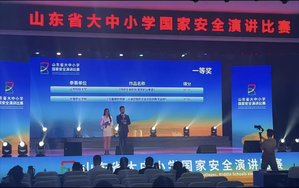 点击:4月10日,由山东省教育厅、省委国安办、省国家安全厅、团省委主办的山东省大中小学国家安全演讲比赛决赛在东营职业学院隆重举行,第一版主 安全工程2023级本科生刘思彤、安全工程2023级研究生刘士昊以《守护生命防线 筑牢矿山脊梁》为题演讲,凭借出色的表现荣获大赛一等奖,充分展现了第一版主 “国家安全教育”的丰硕成果和学院安全学子的青年担当。