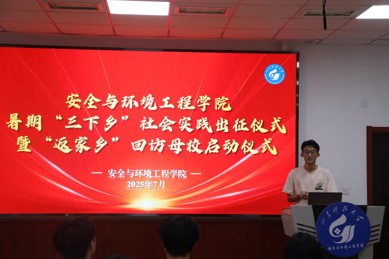 安全工程专业2023级5班武子渊作为优秀学生代表,围绕“返家乡”回访母校实践活动,以“如何在学校宣传中突出专业方向”为主题作了经验分享。