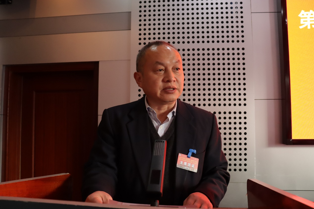 王建友代表学院工会作工作报告,总结了2021年学院工会主要工作,通报了2021年度财务执行情况,并明确了2022年学院工会工作重点。