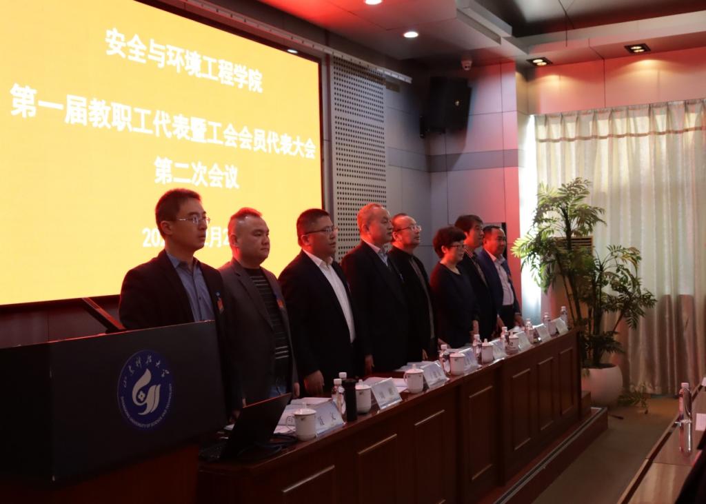 在雄壮的国歌声中,第一版主 第一届教职工代表大会暨工会会员大会第二次会议胜利闭幕。(郭熙 时林超)