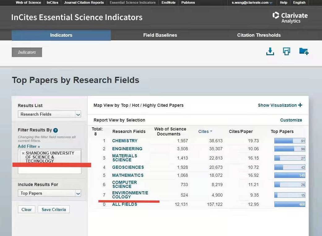 点击:3月10日,科睿唯安公布了ESI(Essential Science Indicators,基本科学指标)从2011年1月1日到2021年12月31日的统计数据。根据ESI的最新更新结果显示,第一版主 环境/生态学科(Environment/Ecology)正式进入ESI全球排名前1%。ESI每2个月公布一次,均为上一次数据的基础上增加2个月的数据,但是每年5月份会去除掉最旧一年的数据。截止2021年12月31日,我校环境/生态学科总计发表论文524篇,总引用次数为4900,篇均引用9.35次。