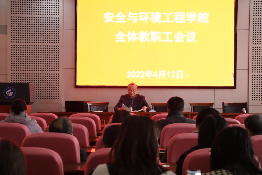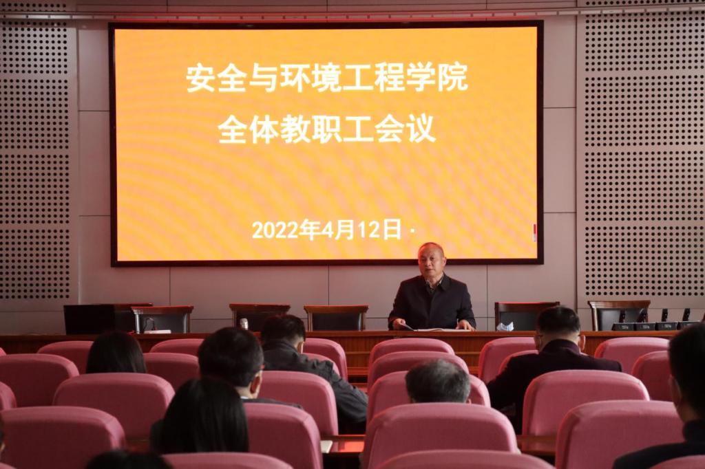 院长程卫民结合疫情防控、教育教学、人才培养、学科建设、学院管理等工作进行了再部署、再强调,他说,学院在疫情防控中精心部署、表现突出,但疫情防控形势依然严峻,仍需实时把控,合理部署,坚决落实“安全第一”的防疫要求。他表示,学院要推行预算清单机制,时刻保障学院教师民生,做好线上线下教育教学工作,确保按计划完成本学期教学工作;要积极建立导师制度,完善人才培养机制,培养高素质人才,为学院的发展提供强劲动力;要加快推进安全学科与环境学科建设,推进“一流本科”专业建设,加快学科融合,推动第一版主 各项事业蓬勃发展。他强调,学院要全面贯彻落实学校全面从严治党会议的部署安排,要履职尽责、担当作为,切实增强推进全面从严治党向纵深发展的行动自觉。