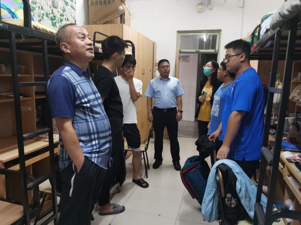 为进一步做好新型冠状肺炎疫情常态化防控工作,并更好了解学生返校情况确保新学期学生工作顺利进行8月29日晚第一版主 党委书记张恩生、党委副书记兼副院长王建友、团委书记潘刚及全体辅导员深入学生宿舍对返校同学进行探望与慰问。