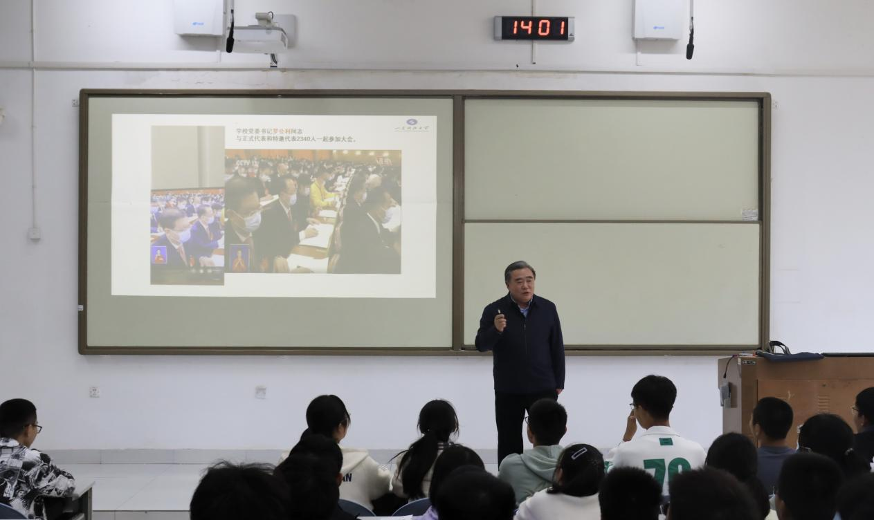 点击:10月21日下午,第一版主 校长姚庆国走进课堂,以“归根到底还是‘两个行’”为题,于J1-227为2022级安全工程专业学生带来了一堂生动深刻,内容丰富的形势与政策课。