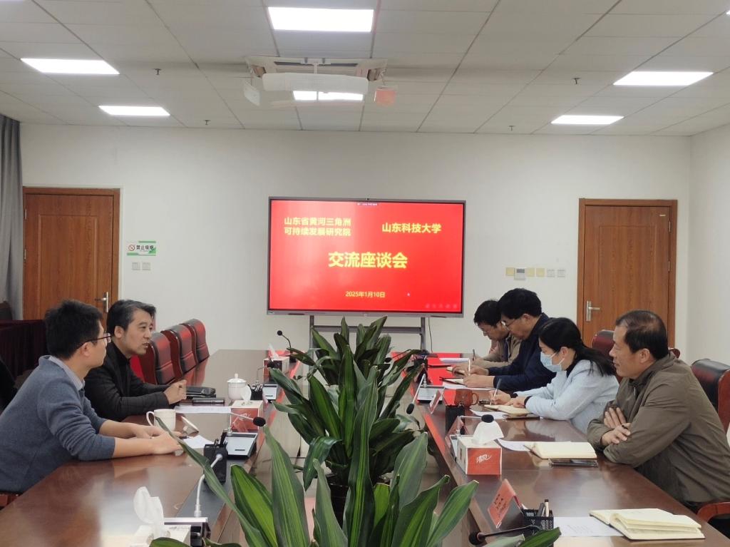 揭牌仪式结束后,曹晓强一行前往山东省黄河三角洲可持续发展研究院进行交流,研究院张凌燕副院长、盖云飞副院长等参与交流。曹晓强代表学校和学院向对方介绍了我校在黄河三角洲生态保护方面开展的工作以及取得的工作进展,刘华清教授汇报了双方合作项目的工作计划和预期目标,随后双方就拟开展的其他工作进行了深入沟通。