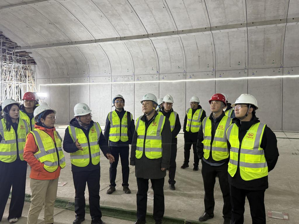活动首站,中心组一行来到正在施工中的青岛地铁红树林站建设工程现场。工程负责人介绍了红树林装配式车站工程规划、施工进度、饰面高性能混凝土施工等创新性技术及安全保障措施,带领各位党员深入施工现场详细观摩车站基坑工程、主体结构施工工艺以及现场作业管理。大家重点考察了解项目建设中的安全风险管控体系,包括高空作业、临时用电、大型机械管理等关键环节的标准化流程与智能化监控手段。青岛地铁在复杂地质条件下攻坚克难,同时将安全管理贯穿每一个细节的实践,为安全工程学科的现场教学提供了鲜活教材。