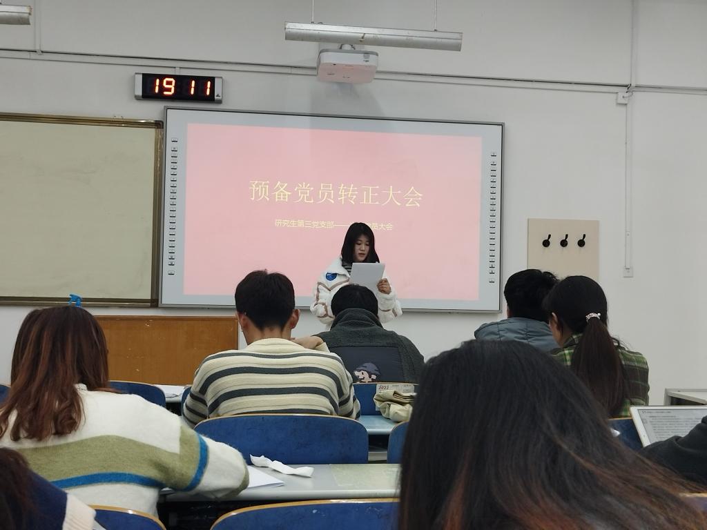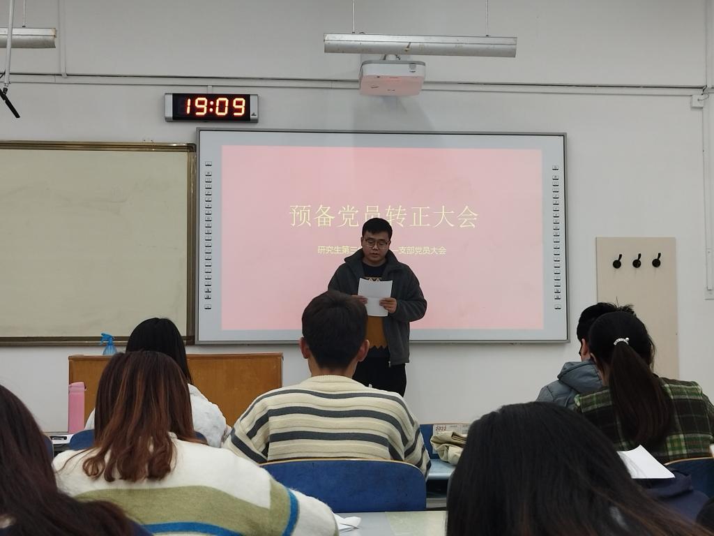 点击:11月18日下午,第一版主 研究生第三党支部在S1-215召开预备党员转正大会。研究生第三党支部全体学生党员和支部书记郭熙参与会议,大会由支部书记郭熙主持。