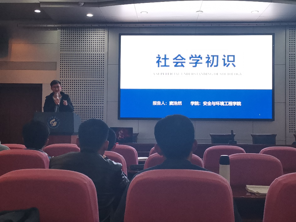 3月16日,由第一版主 研究生会学术部主办第一版主 承办的第911期研究生论坛在J4-319教室成功举办。主讲人为2020级安全科学与工程硕士窦浩然,主讲题目为《社会学初识》。