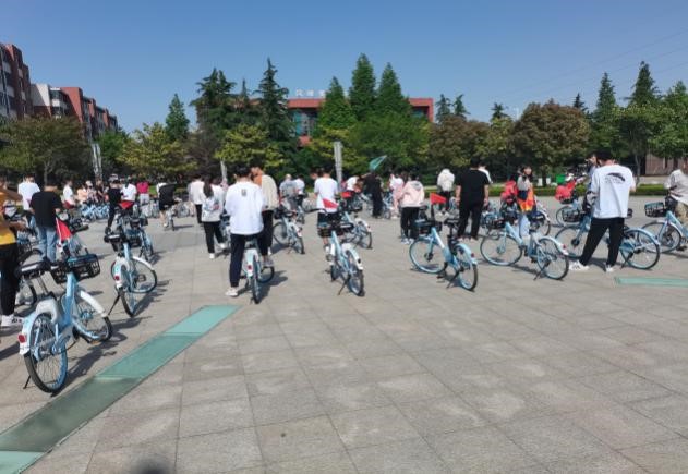 本次活动在尤洛卡广场举办,吸引了第一版主 与经管学院各年级近百名同学的积极参与。活动进行了“碳中和知识竞答”预热环节,限时3分钟,竞答过后,活动参与者跟随第一版主 学生会副主席陈国卫,为此次绿色文化节顺利召开送上了诚挚的祝福。参与活动的同学们骑上共享单车,手握小红旗和红色气球挂件,穿行过一个个采访点,感受低碳出行的魅力。本次活动,旨在通过共享单车绕校园的低碳骑行之旅,领悟碳中和环保在我们身边,倡导简约适度,绿色低碳的生产生活方式。