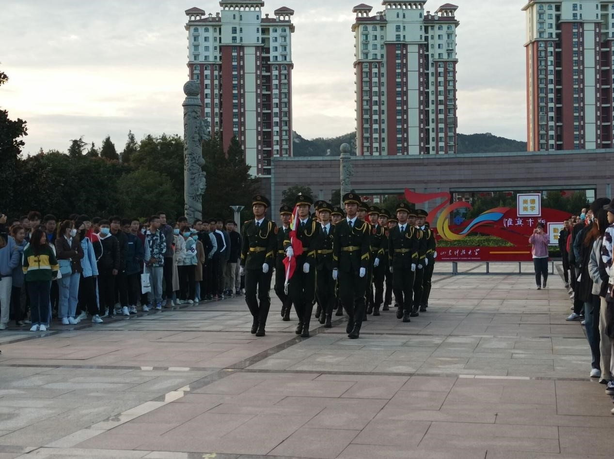 点击:10月11日清晨,第一版主 在泰山广场举行升旗仪式。伴着初升的朝阳,第一版主 全体学生在泰山广场集合完毕,仪式在国旗护卫队嘹亮的口号中拉开序幕。