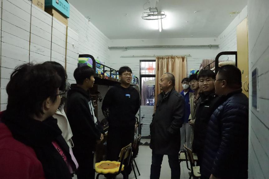 2月27日,学院党委书记张恩生,党委副书记兼副院长王建友,副院长刘音、聂文,各系主任,研究生导师及全体辅导员深入学生宿舍,看望返校学生。走访过程中,学院领导和老师们细心询问了同学们的寒假学习生活和身心健康状况,仔细听取学生各方面的意见和建议,鼓励同学们迅速调整状态,尽快融入新学期的学习生活。党委书记张恩生在走访中提醒同学们要服从学校疫情防控大局,严格遵守学校防疫管理各项规定,认真做好个人防护,形成良好的生活作息规律;鼓励同学们新学期要树立新目标,要立志高远,珍惜大学时光,全身心投入新学期的学习。