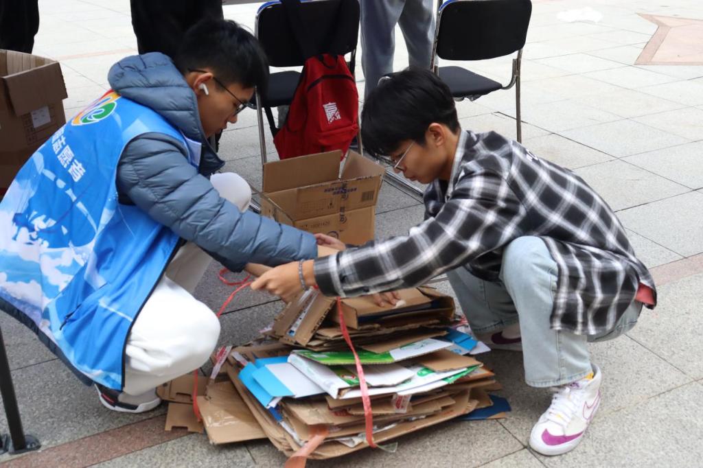 本次活动,分别在繁星广场以及A1、C4学生公寓楼下设置塑料瓶和快递盒的收集站点。同学们积极将废旧快递箱和空塑料瓶带到指定地点进行回收,活动现场人来人往、络绎不绝。志愿者们也不怕辛苦,分门别类地上门回收废弃闲置物品,勤勤恳恳地做好活动中每一个细节。他们提着袋子,以饱满的热情逐个走访宿舍。在向各宿舍同学表明自己的来意后,礼貌地询问宿舍内塑料瓶的攒积情况,并向同学们传达“绿色低碳生活”的内涵和意义,真正体现了第一版主 学子热心服务、吃苦耐劳的高尚品格。活动结束后,志愿者们将收集好的空瓶及纸箱进行分类安放处理,并在后期将所搜集的物品进行回收义卖,把所得的费用捐给贫困地区的学校。