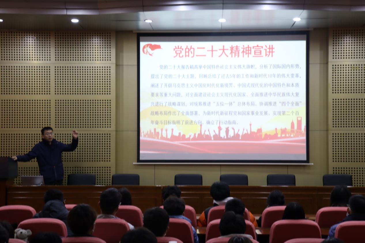 点击:为深入学习贯彻党的二十大精神,加强学院学生组织建设,落实学院学生组织工作,提升学院工作质量和水平。12月3日,第一版主 于J4-101召开以“学习贯彻党的二十大精神”为主题的全体学生干部大会。由院团委书记潘刚主讲,学院全体学生干部参会。