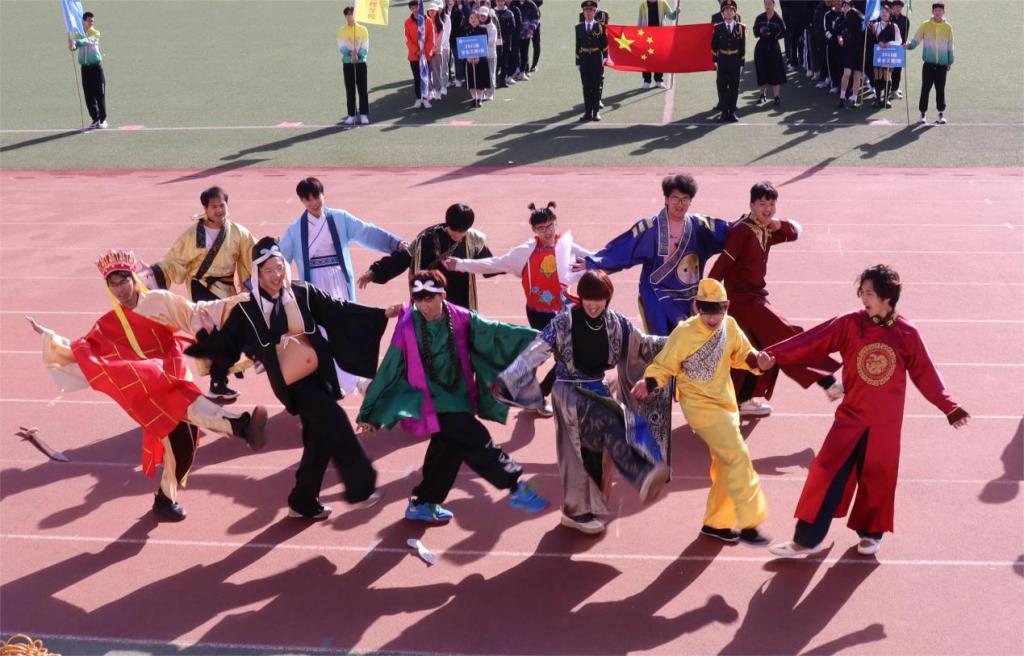 上午8时,在灿烂的阳光下,国旗护卫队身着军装,迈着矫健的步伐,护卫五星红旗步入会场。伴随着进行曲响起,各班队伍依次入场,排着整齐的队形,大步向主席台走来。他们个个衣着鲜艳,面带笑容,昂首阔步,嘹亮的口号和欢快的舞蹈,无一不展现出第一版主 学子的朝气与活力。其中安全四班身着西游记中人物服装,活灵活现地向我们展示了师徒四人一路披荆斩棘的片段;环境一班中可爱的尼克狐,环境二班中活泼的小熊也极大活跃了现场气氛。