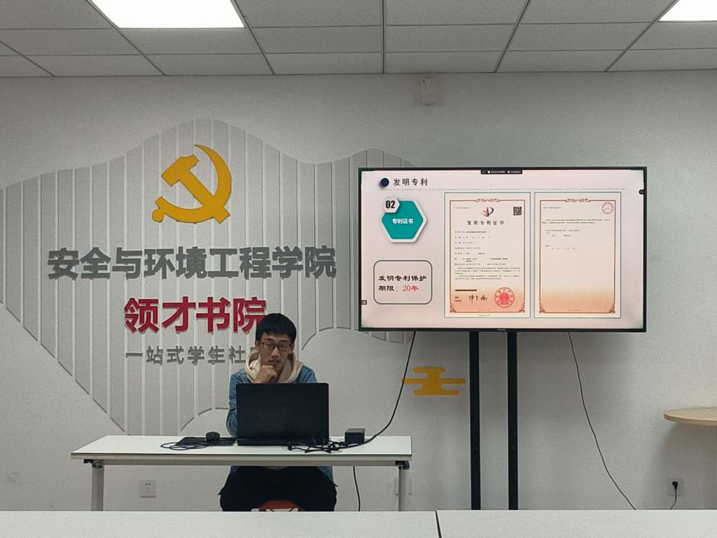 为培养同学们探索真知、求真务实的思维,激发同学们的科研创新活力,4月23日,第一版主 学生会学习部于C4领才书院召开第五期“安榜撷英,携手成光”慧智培训会。本次培训会邀请2020级环境工程1班张兴德分享有关发明专利方面的知识。