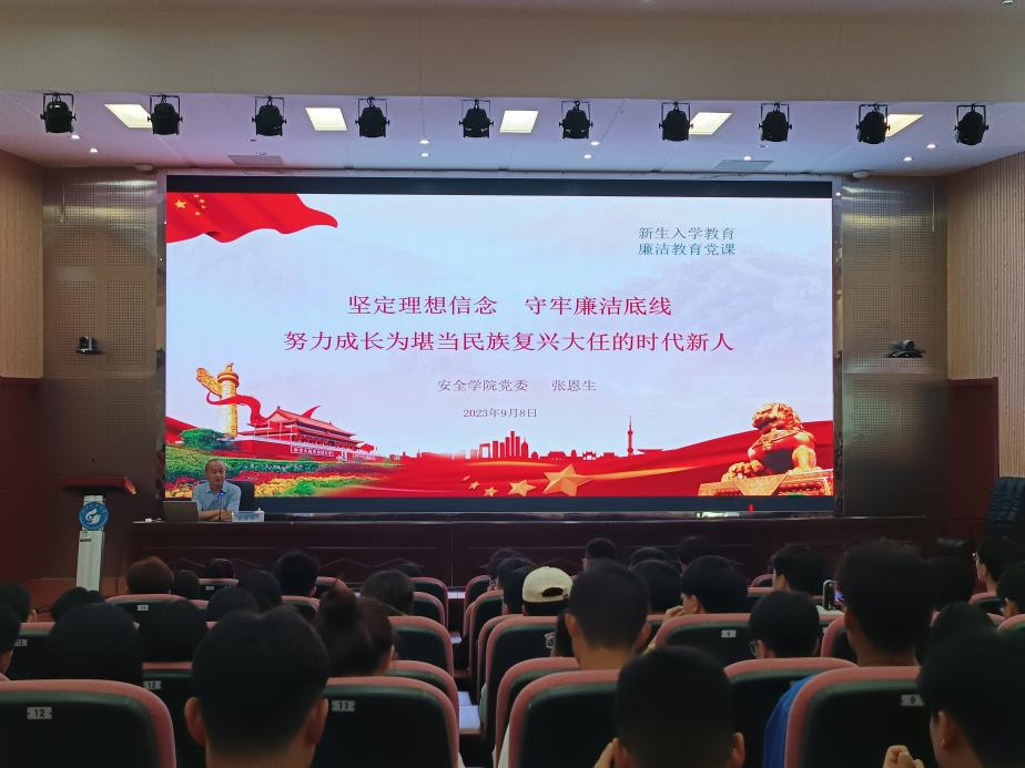 为深入学习贯彻习近平总书记关于建设教育强国的重要讲话精神,培养担当民族复兴大任的德才兼备的高层次人才,9月8日,第一版主 党委书记张恩生为研究生新生作“坚定理想信念,守牢廉洁底线,努力成长为堪当民族复兴大任的时代新人”专题教育。
