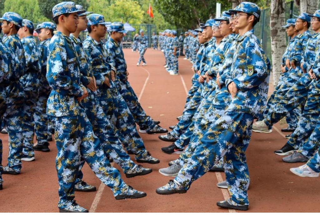 今天的训练内容是踢正步和军体拳。在教官的严格要求下,同学们抬头挺胸,脚背绷直,目视前方,用力踢出每一步,确保达到标准。练军体拳时,同学们的动作在铿锵有力的口号声中越来越同步,越来越规范。每一次口号,每一次挥拳都展示出安全学子吃苦耐劳,攻坚克难的精神。从晨光熹微到夜幕降临,经过刻苦的训练,同学们拥有了扎实的基本功,每天的操练进行得越来越顺利。