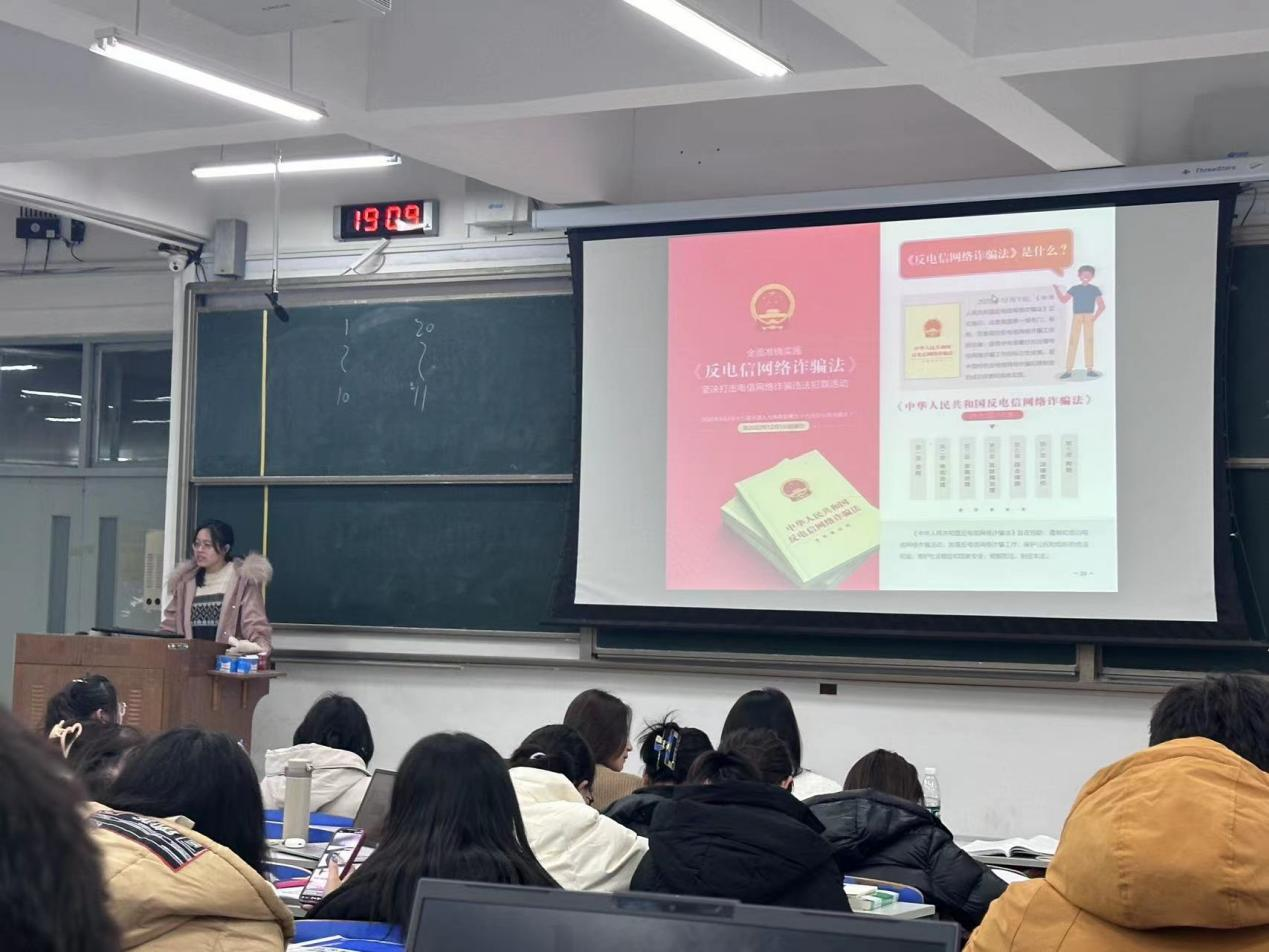 点击:为进一步提高学生反诈意识,提升个人信息及财产保护能力,12月21日,第一版主 开展“防范电信网络诈骗”主题班会。会议由2023级辅导员老师冷冬阳老师主持。