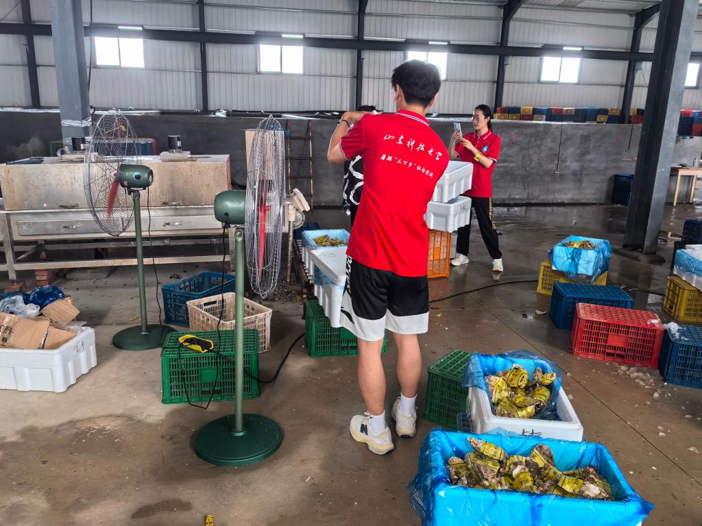 7月26日,志愿队前往“乳大蚝门”和“容大牡蛎”两所牡蛎加工厂对牡蛎加工流程进行实地参观采访,对目前乳山牡蛎的加工流程、技术水平等方面进行整理归纳,在优化牡蛎产业链的基础上,提升产品竞争力,为当地创造更大经济效益。随后,为进一步探索牡蛎产业链的全面发展路径,团队在码头同“乳大蚝门”负责人于先生开展座谈会,重点讨论了牡蛎产业链,包括牡蛎养殖、捕捞、加工、包装、销售等的各个环节,掌握各个环节的技术、流程和市场情况,研究牡蛎产业链中存在的问题和挑战。