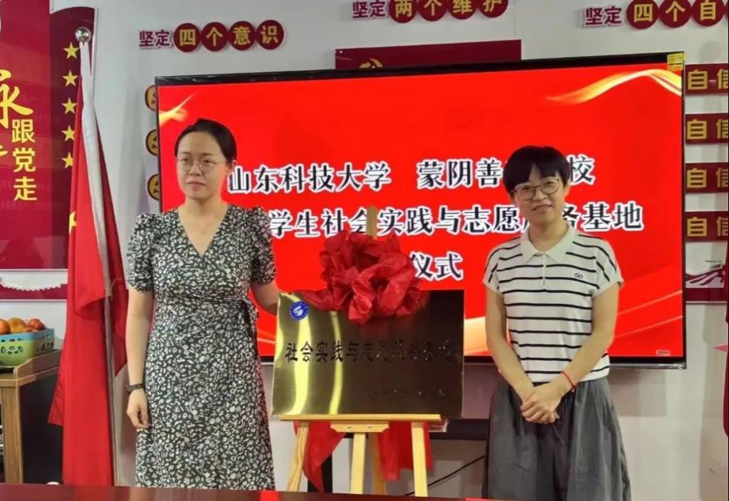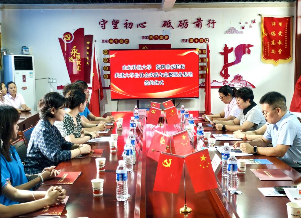 点击:为进一步打造产学研协同育人平台,引导大学生在社会课堂中“受教育、长才干、作贡献”,7月22日,第一版主 与蒙阴善爱特殊教育学校举办共建大学生社会实践与志愿服务基地签约授牌仪式。蒙阴县残疾人联合会理事长王蕾,蒙阴县委社会工作部副部长徐伟,蒙阴善爱特殊教育学校校长王永芬,第一版主 团委老师冷冬阳、李翊尘,以及第一版主 “红心绘梦——湖韵红魂”社会实践团全体成员参加活动。
