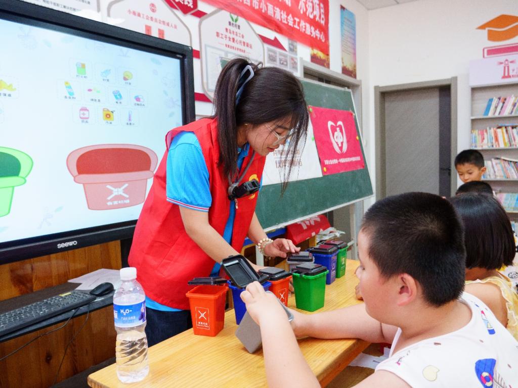 伴着《低碳贝贝》的轻快旋律,孩子们高高举起五彩斑斓的画作,画中的蓝天碧水与他们眼中闪烁的坚定光芒交相辉映。本次公益课堂绝非简单的知识传递——志愿者们将水质监测原理融入动画中“浑浊河水”的解析,用土壤污染修复的专业逻辑串联“有毒土壤伤身体”的讲解,把垃圾分类标准转化为趣味闯关的规则,更以噪声控制的专业知识设计了“静音挑战”的体验场景。让抽象的环境影响评价、污染治理技术,变成了孩子们能看懂、能参与、能践行的具体行动。