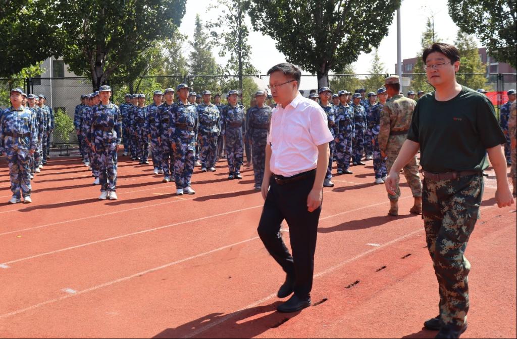 随着教官一声令下,三个连队、三百余名安全学子迅速响应,以挺拔的军姿、整齐的队列接受检阅。齐步走步伐稳健,正步走落地有声,跑步前进气势如虹;立定转体干净利落,敬礼动作标准有力;声声口号响彻操场,炯炯目光坚定自信,每一个细节都凝聚着刻苦训练的汗水,彰显出集体的默契与青春的昂扬。王君松认真观摩了分列式演示,对同学们在训练中展现出的高度协同和顽强意志表示高度赞扬。