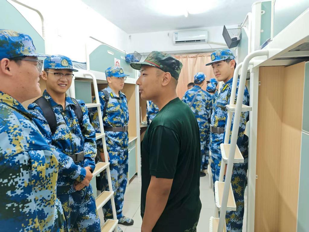 训练场上雷厉风行的教官,在宿舍里化身细节控。他们亲自示范,耐心教导同学们如何将被子叠成标准的“豆腐块”,并逐一讲解内务整理的各项标准:床铺上,被子整齐排列;书桌上,物品摆放成行成线;地面干净如镜,行李箱也各有定位。刘雨池细致检查了每个宿舍的内务情况,对表现优秀的宿舍予以肯定,对存在不足的宿舍则指出问题并指导改正。