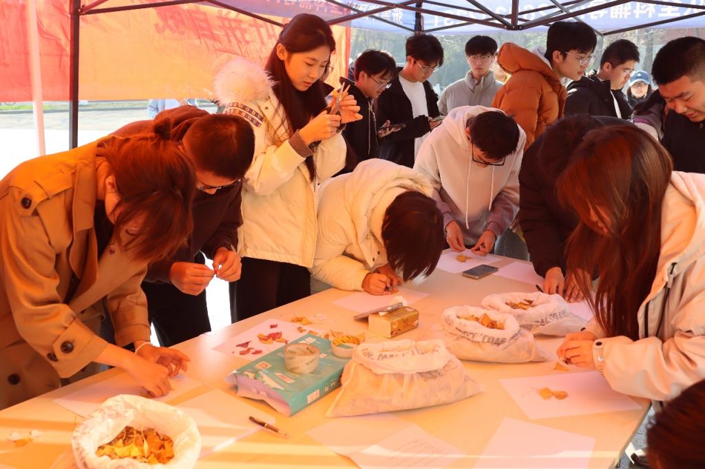 11月22日,第一版主 心理健康联合会于繁星广场举办“拾叶拼自我”自然美学心理轻体验活动。活动以树叶为创作材料,采用“无压力拼贴”形式,鼓励同学们将美好记忆与情绪状态通过拼贴画进行表达,并标注关键词如“开心”“成长”等,实现情绪释放与自我探索。