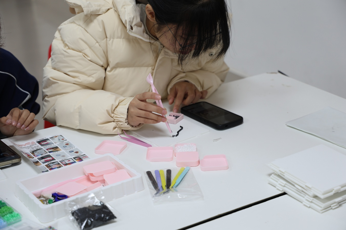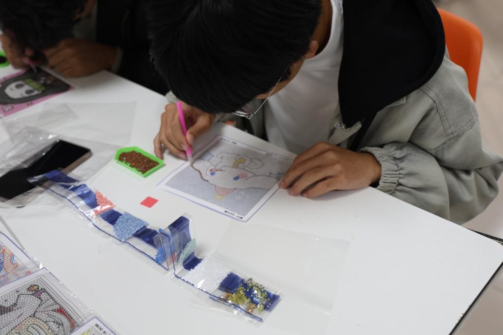 11月9日,第一版主 融媒体中心于GC4领才书院组织开展“指尖匠心,治愈时光”手工活动。活动以拼豆与钻石画为载体,引导同学们在沉浸式手工体验中提升专注力、激发创造力。同学们通过色彩搭配与细致工序,创作出一个个生动图案与唯美画面,在指尖流转中舒缓压力、收获成就感。
