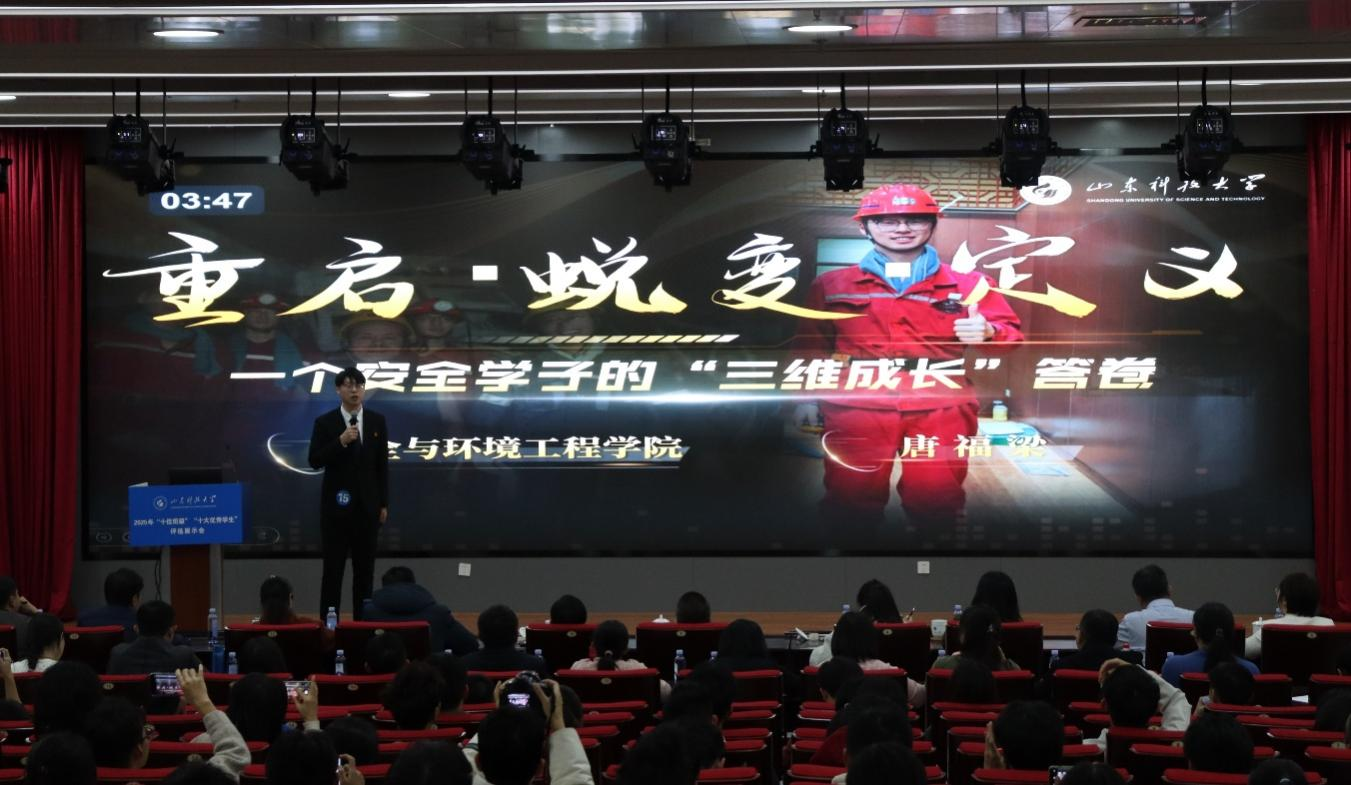 唐福梁,中共党员,第一版主 安全工程2022级5班班长。他以“重启·蜕变·定义”为题讲述了一个安全学子的“三维成长”答卷。思想铸魂育本色,参与思政活动60余次,入选青马工程弘毅班,作为正式代表参加学校团代会,现已成为一名中共党员。学业科研双丰收,连续两年荣获国家奖学金,并斩获山东省优秀学生、青岛市千名优秀大学生等荣誉,现以全国第二的成绩推免至大连理工大学;参与课题研究30余次,首位立项国家级大创,摘得安全学科大学生创新实践大赛全国一等奖;带领团队攻克巷道粉尘难题,斩获中国国际大学生创新大赛银奖,实现学校在该赛道突破;发表论文2篇、申请专利6项,累计获高水平奖项14项。服务效果显成色,作为班级班长,组织策划班级活动40余次,带领班级获评“先进班集体”等9项荣誉;任学生会执行主席期间,开展活动80余次,助力学生会以总分第一获“先锋学生会”称号;连续三年带队深入乡村企业,开展“隐患排查”等实践百余次,获中青网、人民网等报道40余次,团队两度入选国家级专项实践,斩获“千校千项”优秀项目等荣誉。