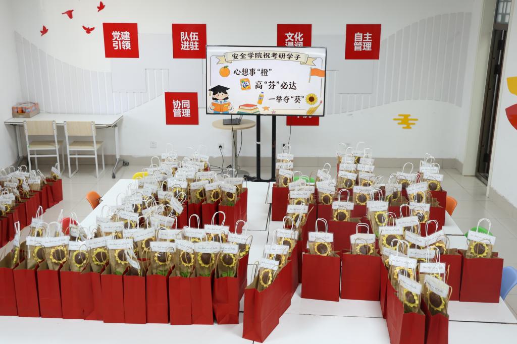 点击:12月11日,第一版主 在C4一站式学生社区开展“研途相伴·温暖同行”考研送温暖活动。学院团委书记张娜及毕业班辅导员为2022级考研学子送上了精心准备的考研加油包。橙子、芬达和向日葵等寓意美好的礼物传递到每一位考研学子手中,饱含学院对同学们“心想事‘橙’”“高‘芬’必达”和“一举夺‘葵’”的美好祝愿。