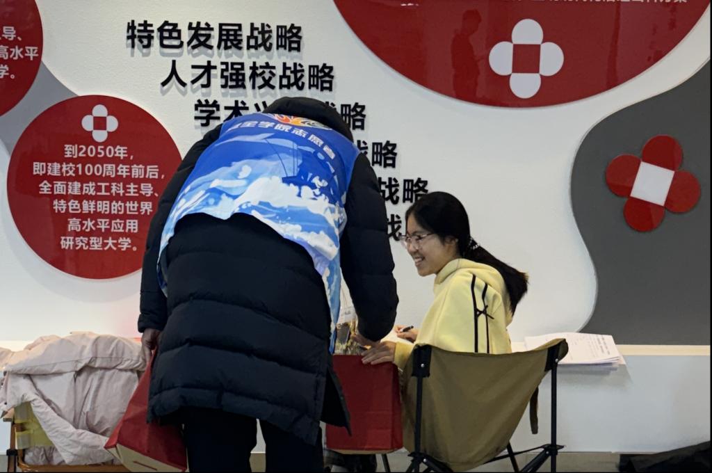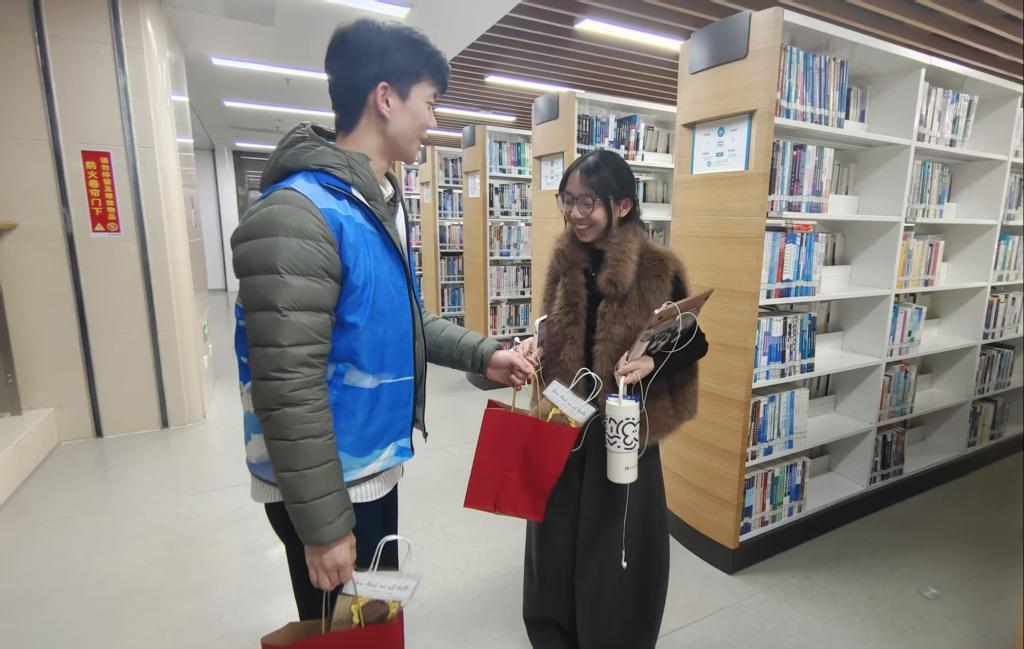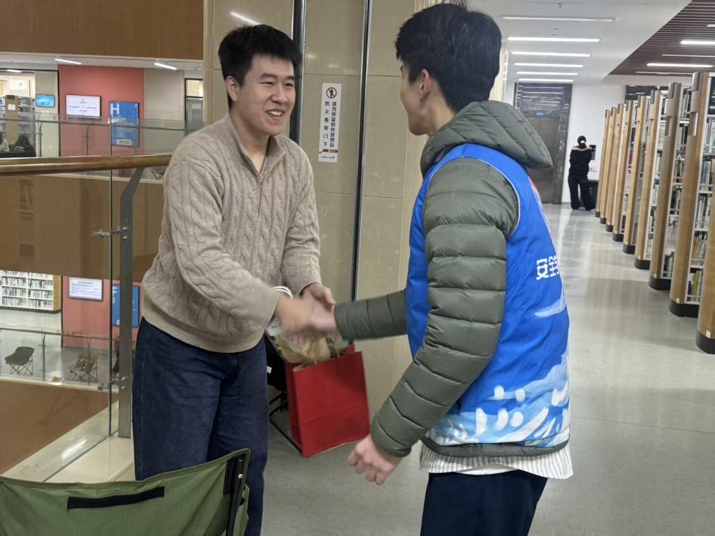 一份份装满祝福的“考研加油包”摆成“上岸”的形状,表达了学院全体师生对考研学子们的真心祝愿。收到礼物的同学们纷纷表示,这份在冲刺时刻送抵的“加油包”让他们在寒冷的冬日里感受到了来自学院的浓浓温情。第一版主 志愿者还在图书馆随机为备考学子发放爱心“加油包”,将严冬的温暖传递到学校的每一个角落。