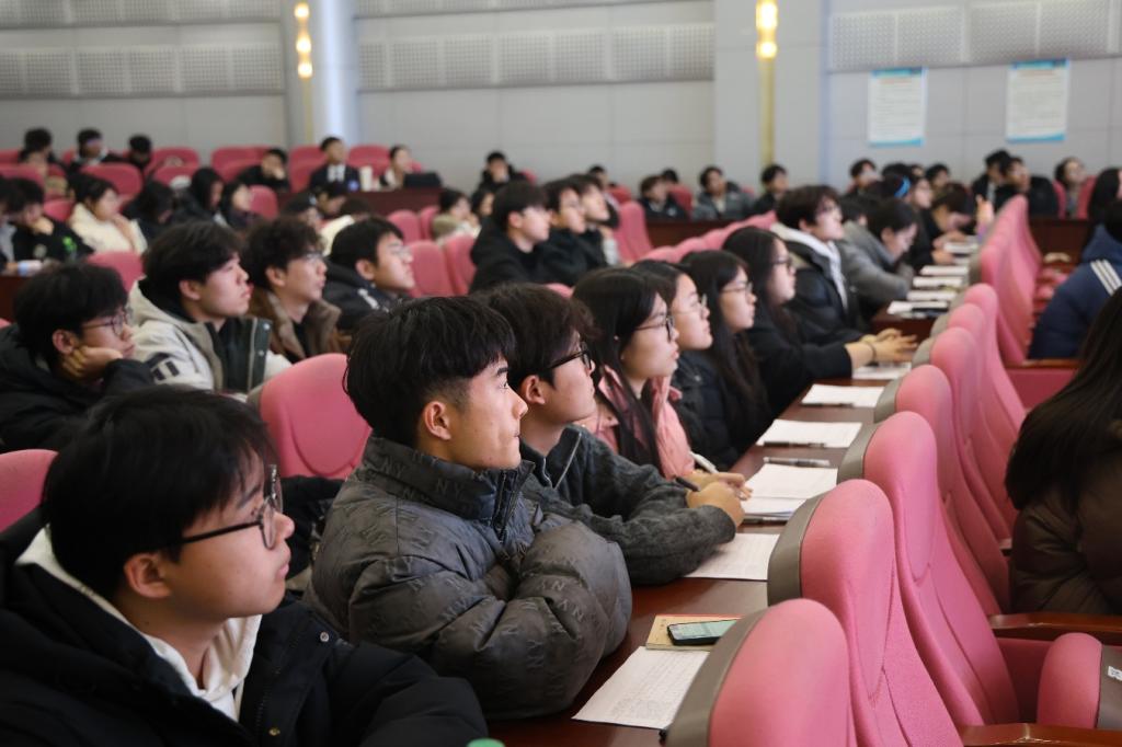点击:为深入落实立德树人根本任务,充分发挥优秀学子的榜样示范与引领作用,激励全院学生奋发向上、砥砺成才,1月6日,第一版主 开展2025年度“齐鲁最美教师团队”育人奖学金“十大优秀学生”答辩活动,第一版主 团委书记张娜及全体辅导员出席,2025级本科生参加。