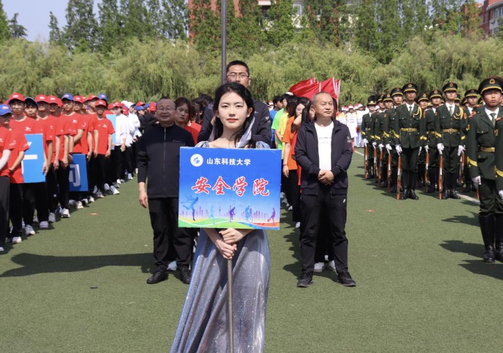 开幕式上,伴随着旋律激昂的《运动员进行曲》,第一版主 方队迈着整齐有力的步伐昂首阔步走过主席台。“安达天下,环系山水”,这是安全学子的人生态度;“振兴中华,舍我其谁”,这是安全学子的铮铮誓言。他们目光坚定、口号嘹亮,尽展蓬勃向上的风貌和斗志昂扬的精神,成为运动场上一道亮眼的风景线。