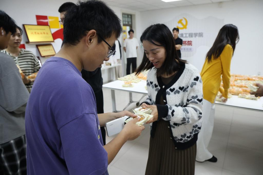 学院党委书记张恩生,党委副书记兼副院长王建友,团委书记张娜及全体辅导员一同走进领才书院,亲手将定制月饼送到每一位新生手中。这份承载着学院深厚情谊的礼物,不仅传递着节日的祝福,更凝聚着师长们对学子们的殷切关怀。