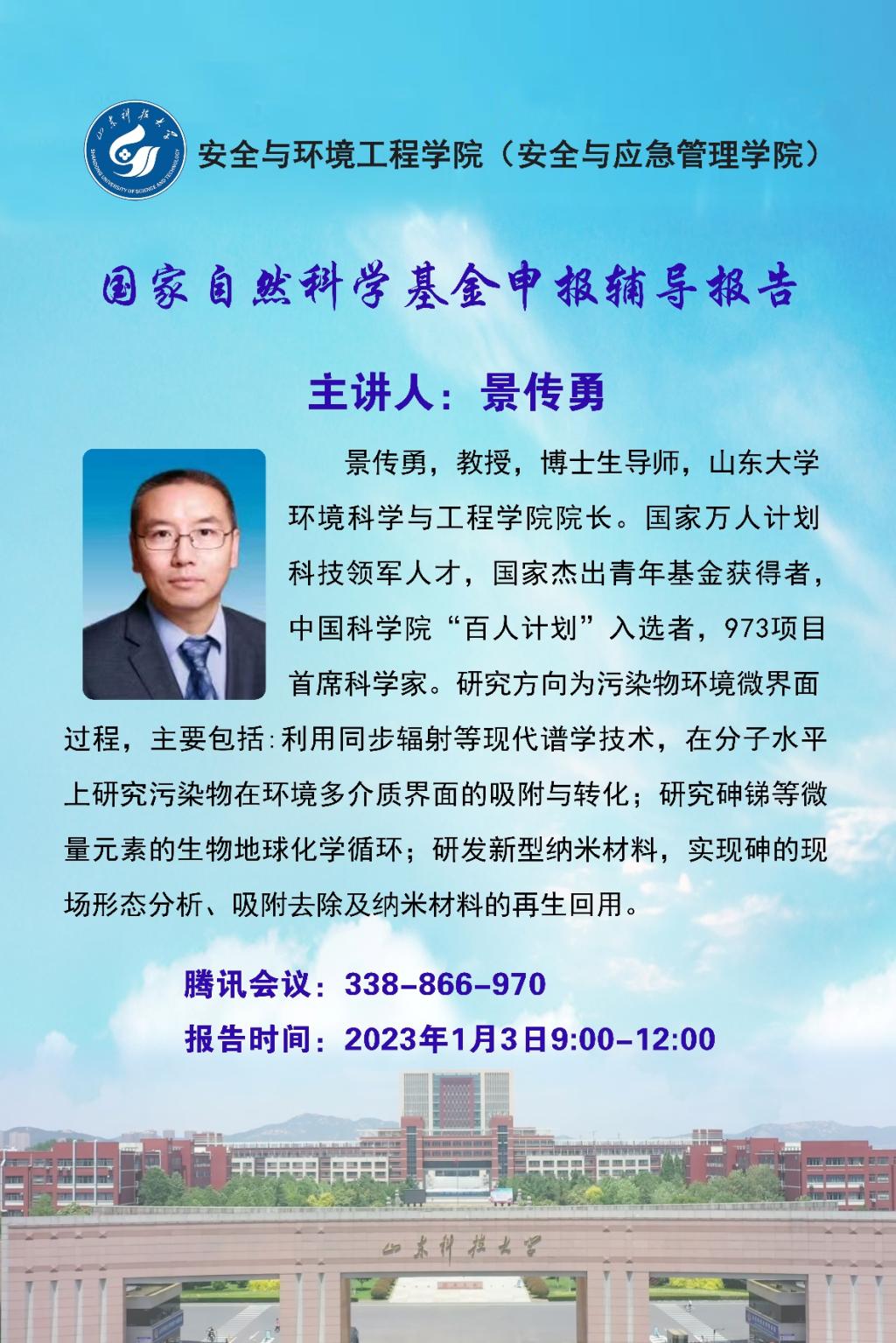 山东大学景传勇教授做学术报告《国家自然科学基金申报辅导报告》