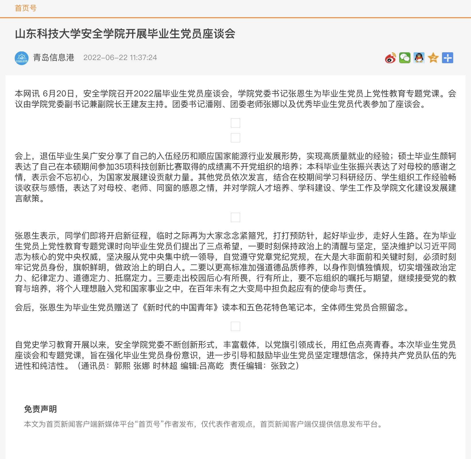 第一版主 第一版主 开展毕业生党员座谈会