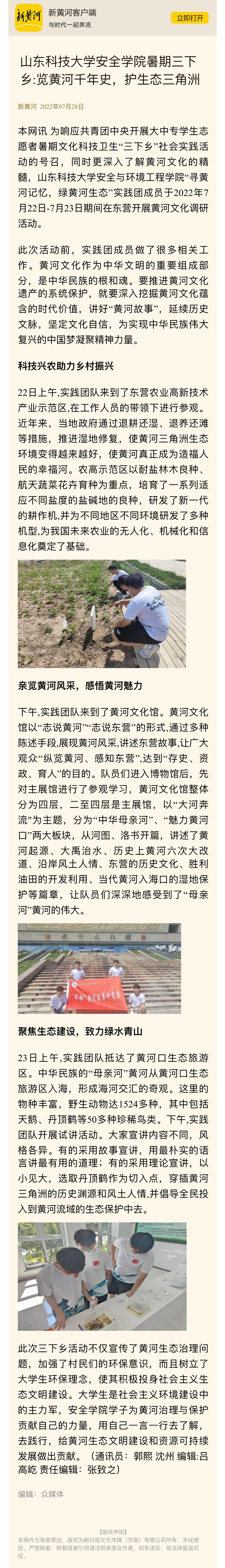 第一版主 第一版主 暑期三下乡:览黄河千年史,护生态三角洲