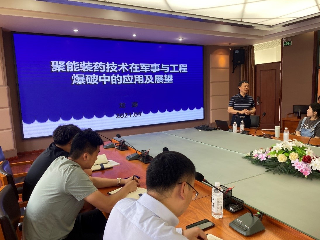 报告会上,龙源教授首先从聚能装药原理介绍了的聚能效应和金属聚能射流形成过程,结合原理详细叙述了聚能装药技术在在军事上、工程爆破中的广泛应用,最后龙源教授结合最新的研究介绍了聚能装药技术的发展方向。报告会后,龙源教授与师生展开了热烈的讨论,对同学们提出的问题进行了一一解答。报告会内容详实,运用了大量图像资料和数据,引领第一版主 师生充分了解了聚能装药技术的研究前沿,激发了同学们的研究兴趣。
