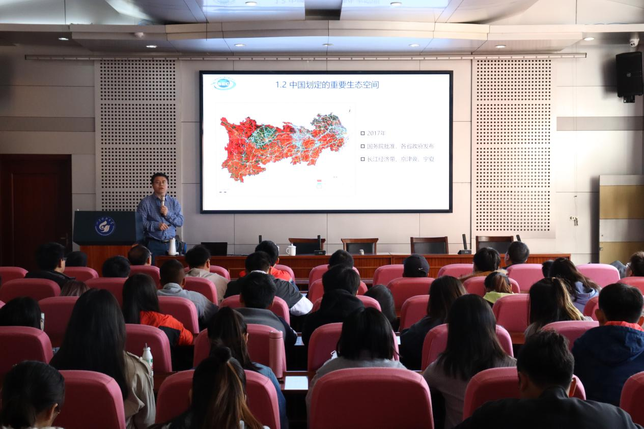 侯鹏从国家重要生态空间的现状、国家生态空间管控的主要政策、国家生态监管业务化技术支撑体系三个方面进行了阐述。首先对我国以国家公园为主体的自然保护地体系进行分析,并指出自然保护地是生态文明建设的核心载体;其次,通过讲述我国生态文明从萌芽到日渐成熟的发展过程,展示当前生态文明建设工作已经取得的阶段性胜利;最后,就定期遥感对自然保护区生态状况监测成效做了评估。本次报告会既高屋建瓴,又纲举目张,既有宏观层面的政策解读,又有实操层面的案例分析,深入浅出,图文并茂,生动形象,对第一版主 环境专业的学习和工作具有很强的指导意义。侯鹏号召同学们要学以致用,将理论与实践融合,在七十年校庆到来之际,继续开拓创新,谱写学院与学校的新篇章!(郭熙 刘方冬)